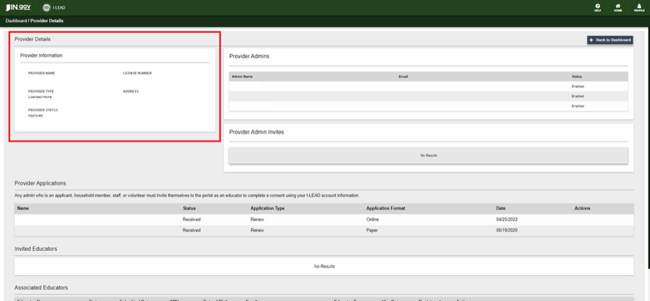 Monitor your email and the View Details or Provider Details section of your license on I-LEAD to see messages from your consultant. If an application requires a change, you may receive an “Incomplete Application” email from no_reply_i-lead@fssa.in.gov, and/or there may be a consultant note in the Provider Information box next to the Provider Admin section. The application may also be in "Edit" mode in the Provider Application section. For an initial inspection and communication, consultants typically communicate by email. The consultant will only schedule an in-person inspection of the premises once all consent forms and licensing paperwork are completed online. Licenses are issued via an admin invitation when all requirements for the child care program are met. Once all changes and consent forms for a background check are complete, the licensing consultant will reach out.