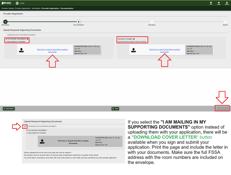 Note: If you select the “I am mailing in my supporting documents” option, once you sign and submit your application, use the “Download Cover Letter” option to download and print. Print off the cover letter and include it with copies of your documents. Include the FSSA’s full address with room numbers to ensure the documents reach the right office. Documents must be mailed within 10 calendar days after the application is signed and submitted.