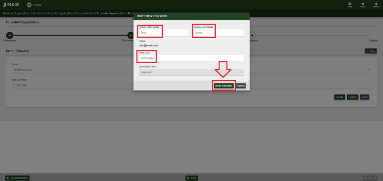 Each new person you add to the Invited Educators section needs their own I-LEAD account with an email address that isn't shared with anyone, so they can do their consent forms and complete their background checks. To fill out this section, you’ll need to enter each person’s: